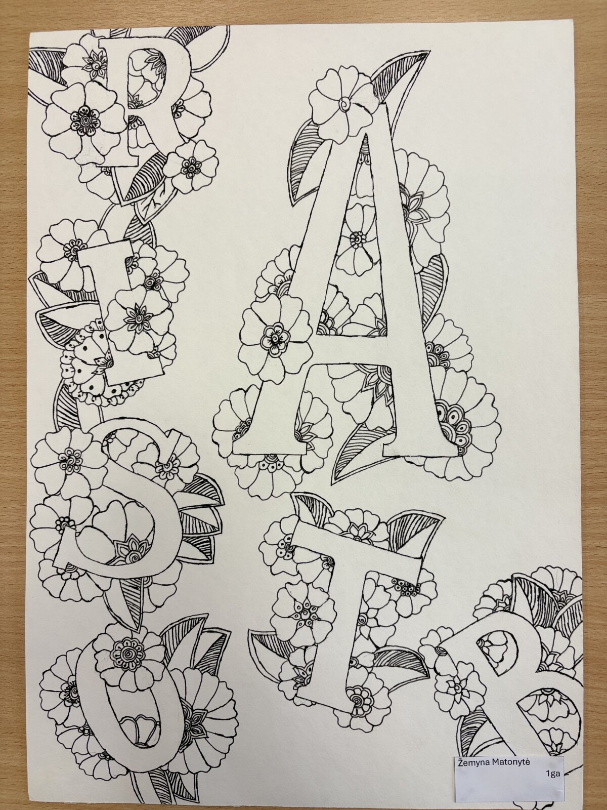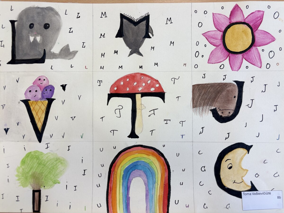 Šių metų iniciatyva pasipildė ypatingu kūrybiniu projektu – 5–10 klasių mokinių piešinių paroda „Matau raides kitaip“. Parodą mokiniai kūrė kartu su dailės mokytoja Jūrate Baranauskiene, kuri vedė netradicinių dailės pamokų ciklą, skirtą šiai temai atskleisti. Pamokose mokiniai ne tik lavino meninius gebėjimus, bet ir gilinosi į disleksijos (specifinio mokymosi (skaitymo, rašymo ir matematikos) sutrikimo) sampratą, perteikdami, kaip jie kūrybiškai supranta ir mato raides.