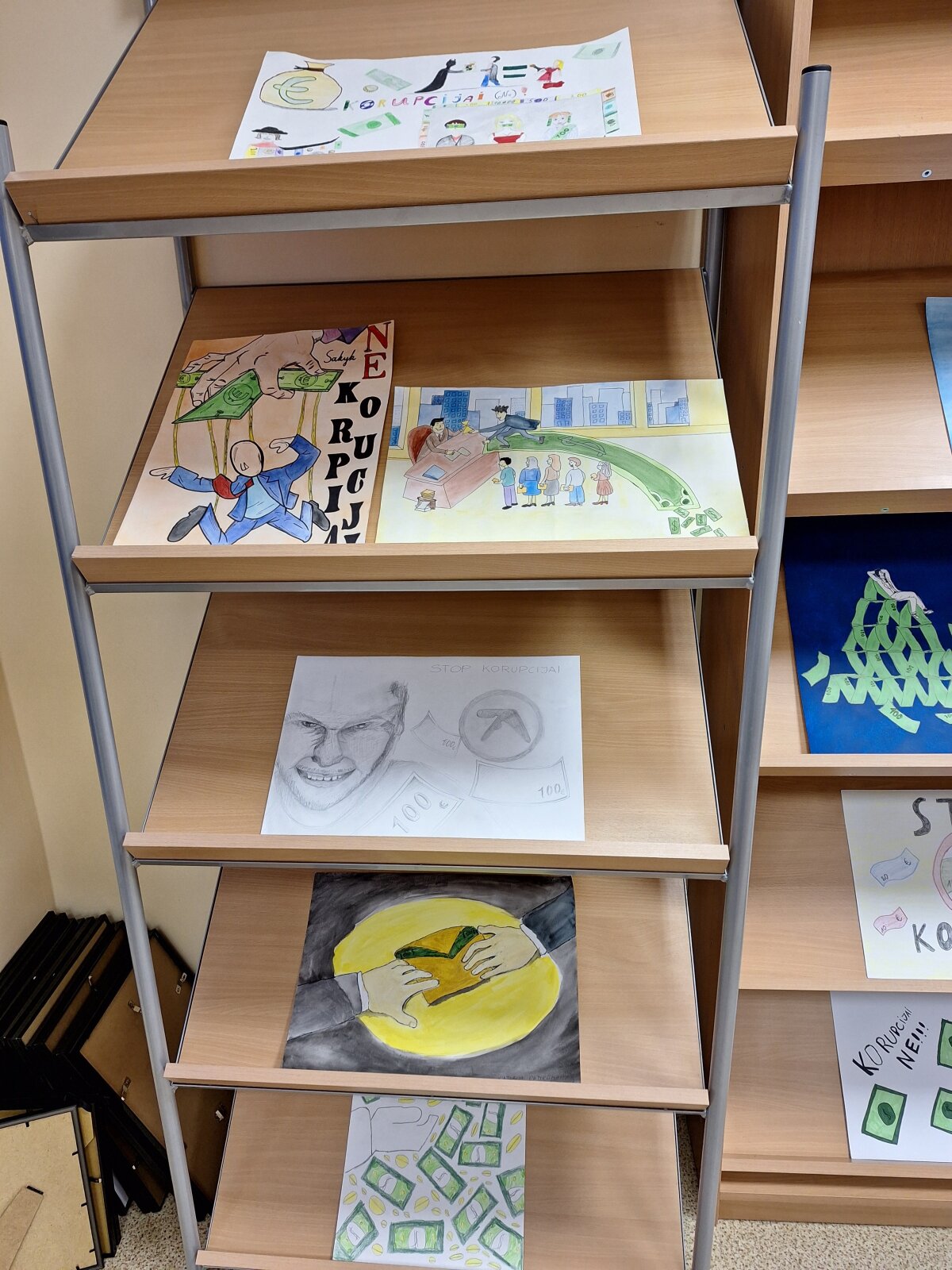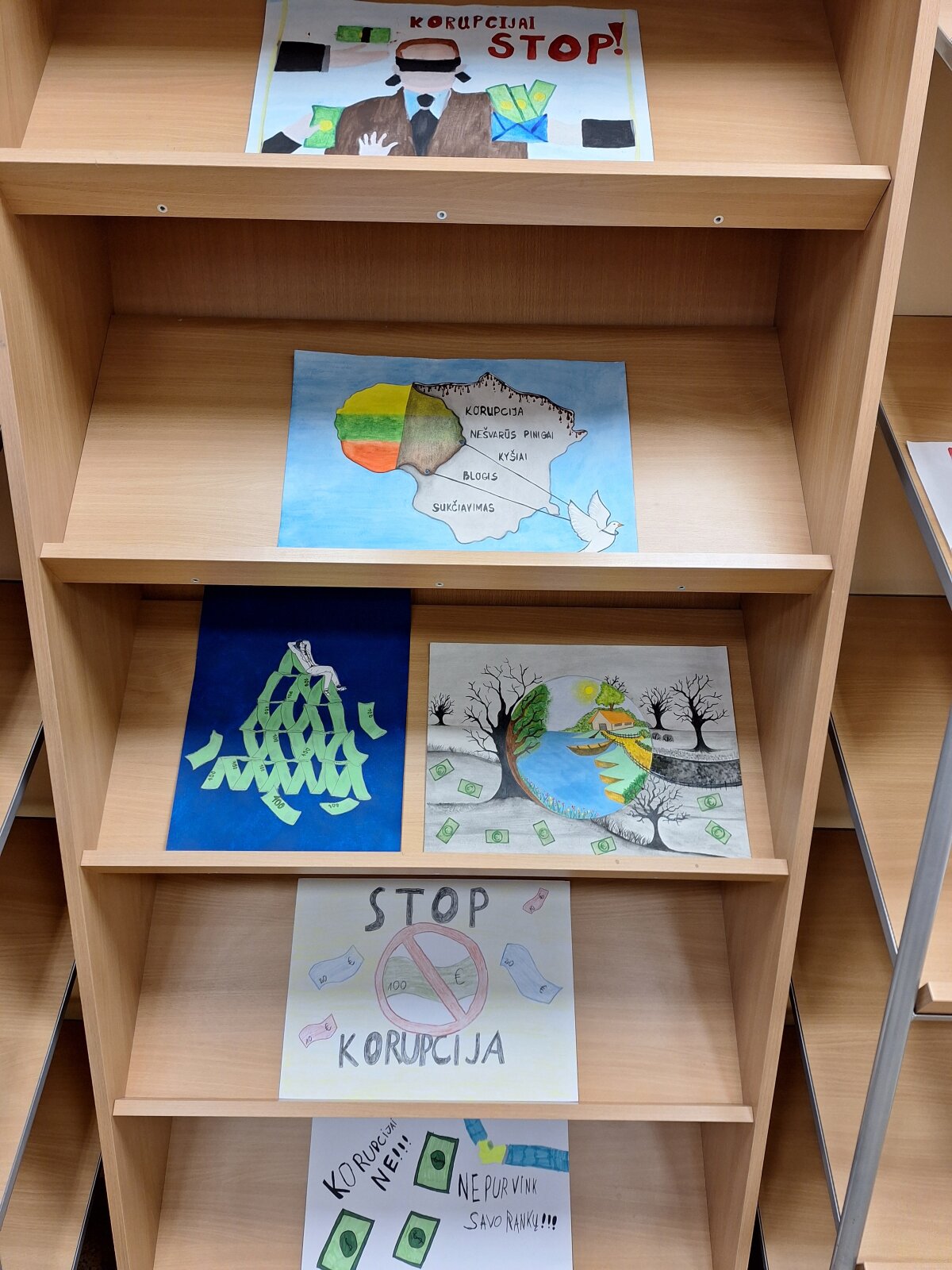 8-II g klasių mokinių piešinių paroda antikorupcijos tema gimnazijos skaitykloje veiks iki gruodžio 15 dienos.