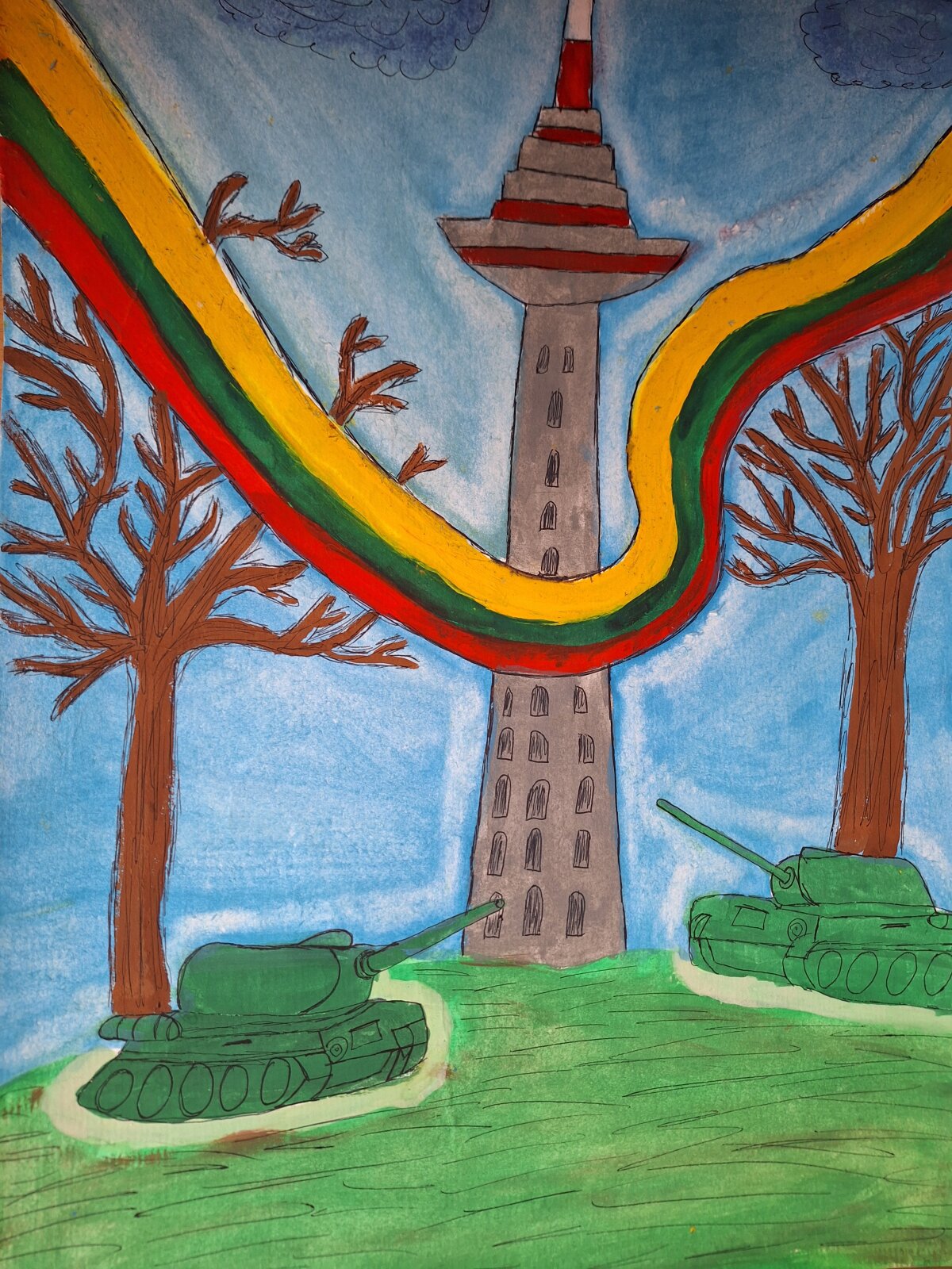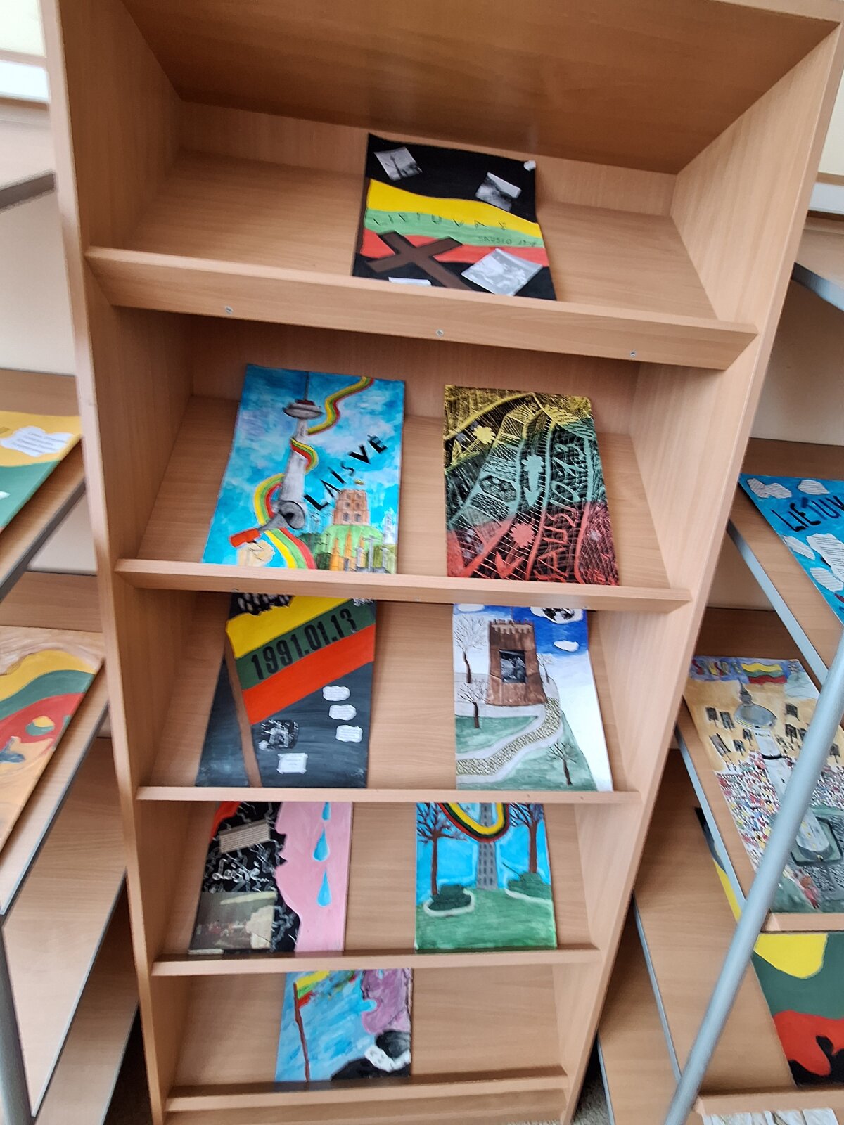 Sausio 13-oji – tai diena, kai istorija prabyla tyliai, bet labai giliai. Nuo pagrindinių šios dienos įvykių praėjo 35 metai. Lazdijų Motiejaus Gustaičio gimnazijos skaitykloje kasmet eksponuojami 5-8 ir I-IVg klasių mokinių piešiniai, skirti šiai tragiškai ir įsimintinai datai paminėti. Piešinius mokiniai piešia per dailės pamokas, vedamas mokytojos Jūratės Baranauskienės. Šiais metais parodoje pristatomi 22 piešiniai, piešti ant A4 formato popieriaus.