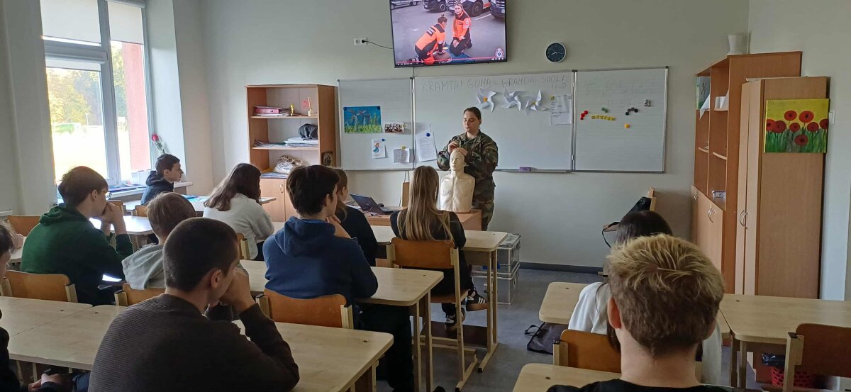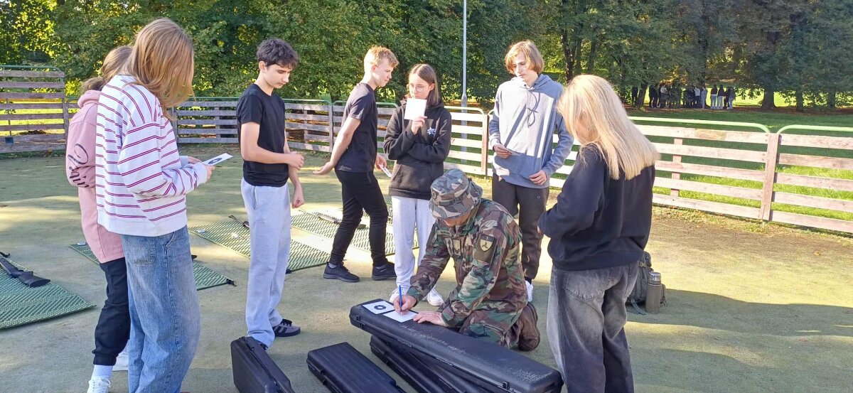 2025-10-08/10 dienomis Lazdijų Motiejaus Gustaičio gimnazijos 1g klasių mokiniams vyko ,,Pilietiškumo ir gynybos įgūdžių kursas“.