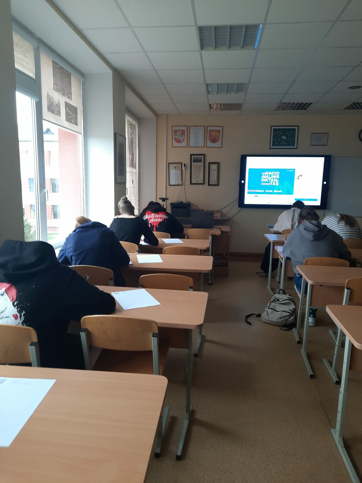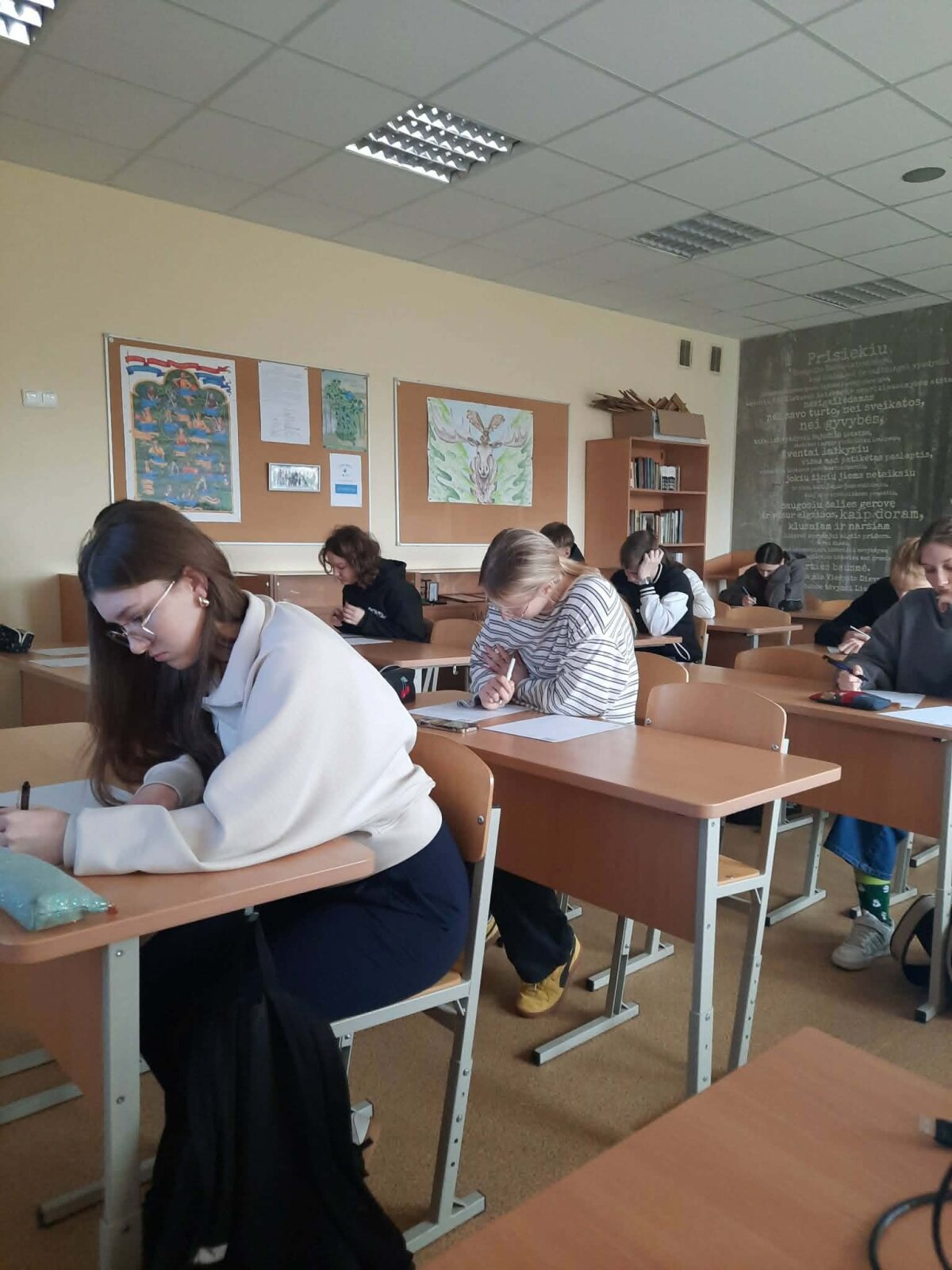 Jau 16-tus metus iš eilės pasitikrinti savo rašybos įgūdžių pakvietė Nacionalinis diktantas. Kasmet tūkstančiai žmonių Lietuvoje ir užsienyje palinksta prie balto popieriaus lapo rašyti per LRT radiją transliuojamo diktanto. Į šią gimtosios lietuvių kalbos suburtą bendriją balandžio 16 dieną įsijungė ir 37 mūsų gimnazijos mokiniai. Jų parašyti darbai iškeliavo į Vilnių konkuro organizatoriams.