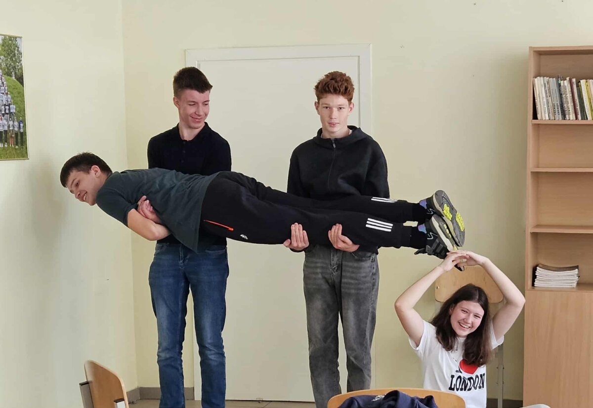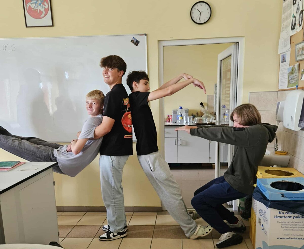 Chemijos pamokų metu 1g klasių mokiniai kūno kalba vaizdavo cheminių elementų simbolius – tapo raidėmis, jungėsi į simbolių kombinacijas. Taip mokomės kūrybiškai, aktyviai sportuojame ir kartu prisimename chemijos žinias. Judėdami, šypsodamiesi ir bendradarbiaudami atradome, kad mokytis galima linksmai ir netikėtai!
