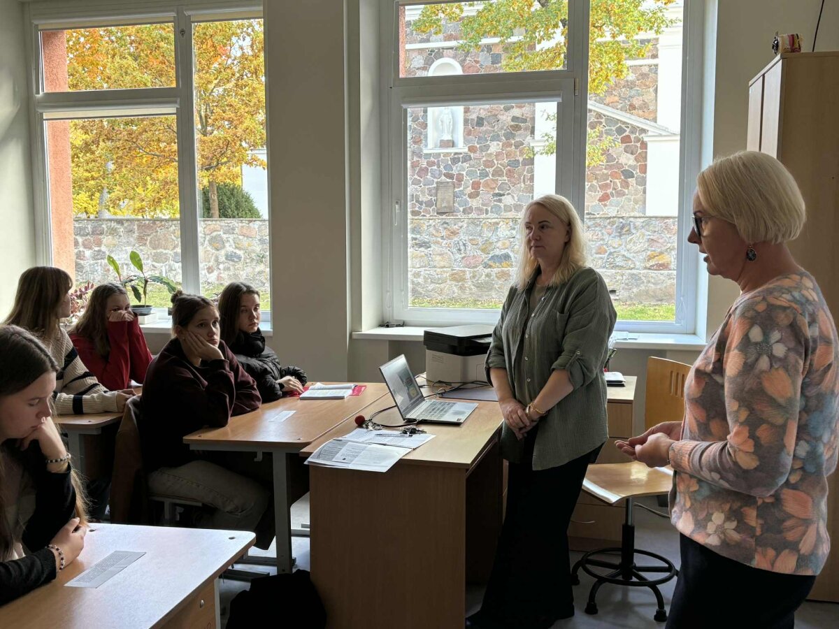 Jaunųjų bendrovių veikloje dalyvaujantys mokiniai turėjo susitikimą su grožio sr... -