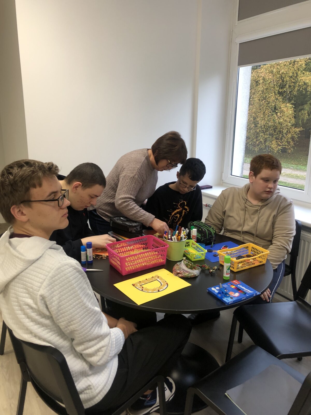 Minint Disleksijos pažinimo savaitę specialioji pedagogė J. Balevičiūtė ir specialiųjų klasių mokytojos V. Burdulienė, Ž. Klimienė vedė pamoką „Mano vardas iš gamtos: kiekvienas kuriame ir skaitome kitaip“. Kiekviena raidelė gali turėti paslėptą prasmę, nuotaiką ar net istoriją. Specialioji pedagogė teigė, kad tokiu būdu raidės ir išmokstamos kitaip – per vaizduotę, pojūčius ir meną. Ji pakvietė atlikti kūrybinę užduotį – paversti savo vardo raidę savitu piešiniu, kuriame raidė tampa fantazijos įrankiu. Mokiniai iš gamtinės medžiagos: kaštonų, gilių, lapelių, uogų, šakelių ir spalvoto popieriaus dekoravo savo vardo raides. Kiekvienas pristatė savo darbus, reflektavo ir įsivertino savo vardo raideles, suteikdami joms prasmingą būvį.