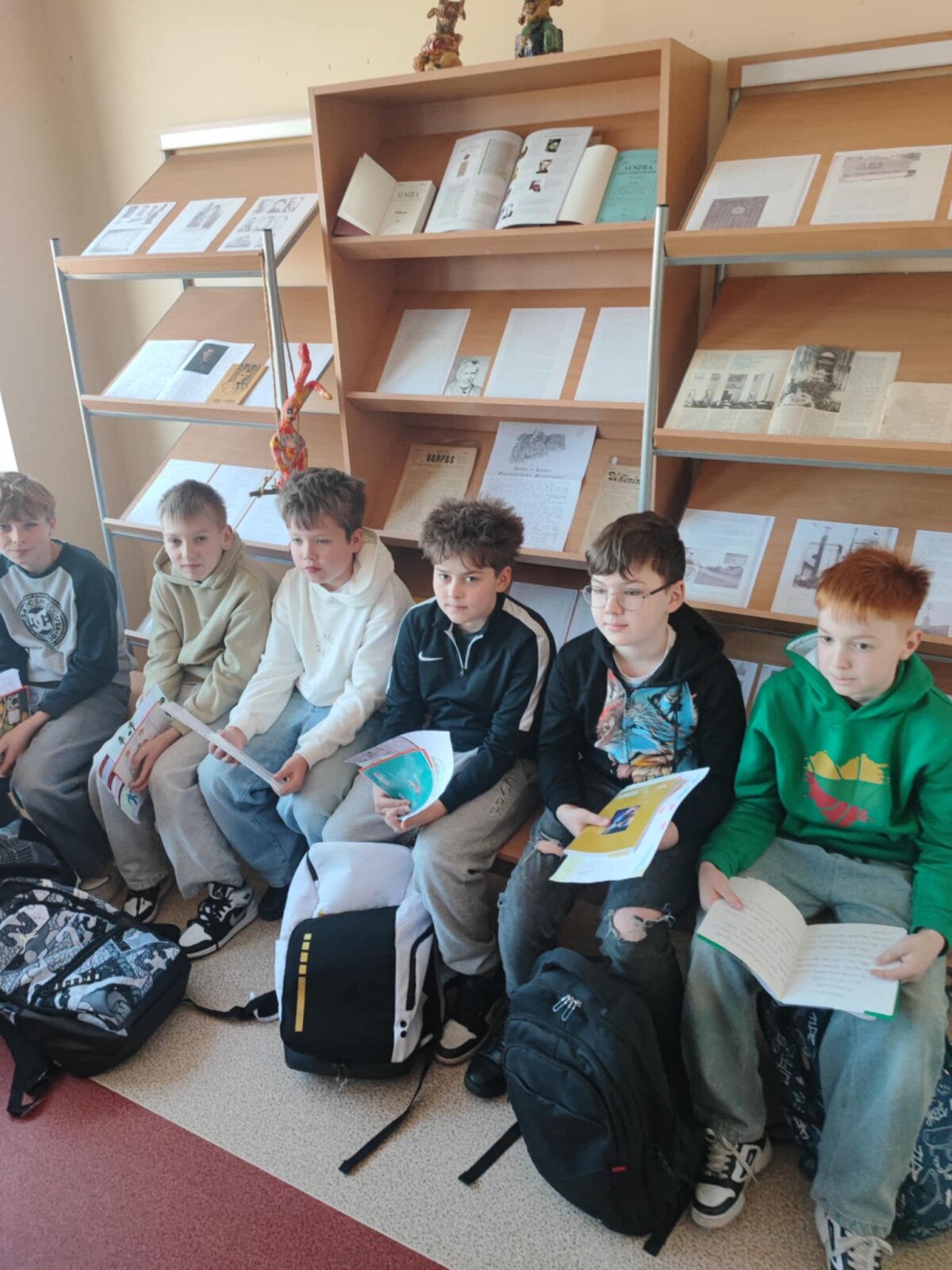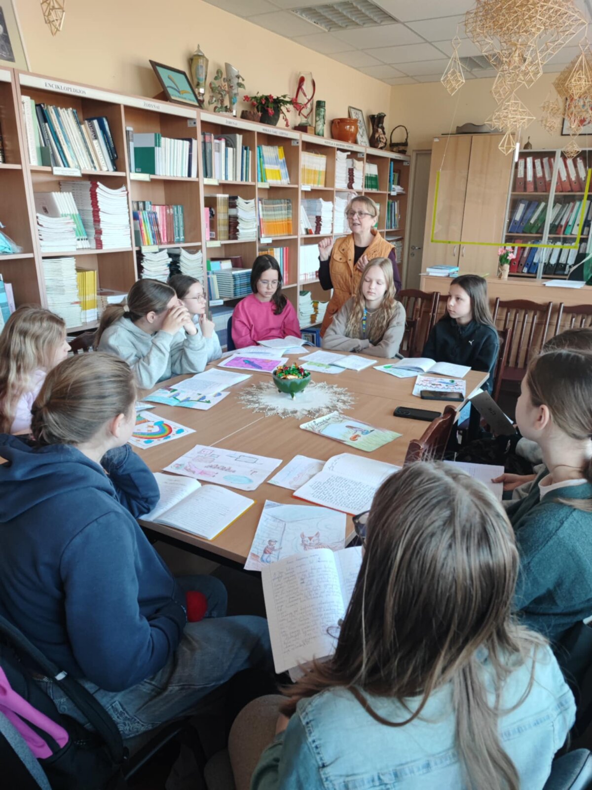 Kovo 19 d. Lazdijų Motiejaus Gustaičio gimnazijos skaitykloje vyko netradicinė pamoka 5b klasės mokiniams „Atpažink pasakų herojus“, kurią vedė lietuvių kalbos mokytoja Snieguolė Mazaliauskienė ir bibliotekininkė Daiva Mikalauskienė. Mokiniai skaitė savo sukurtas pasakas, dalyvavo konkurse, kuriame spėliojo pasakų personažus, surengė pieštų pasakų iliustracijų parodą. Skaitykloje taip pat eksponuojama Kalvarijos meno ir sporto mokyklos Dailės skyriaus paroda „Pasakų personažai“. Kiekviename darbe gyvena istorija – kartais drąsi, kartais paslaptinga, o kartais linksma ir šiek tiek stebuklinga. 5b klasės mokiniai keliavo po pasakų pasaulius ir susitiko su pačiais įvairiausiais herojais. Pamokoje netrūko juoko, aktyvių diskusijų, šurmulio, geros nuotaikos ir saldainių, kuriuos mokiniai gavo už teisingai atsakytus klausimus.
