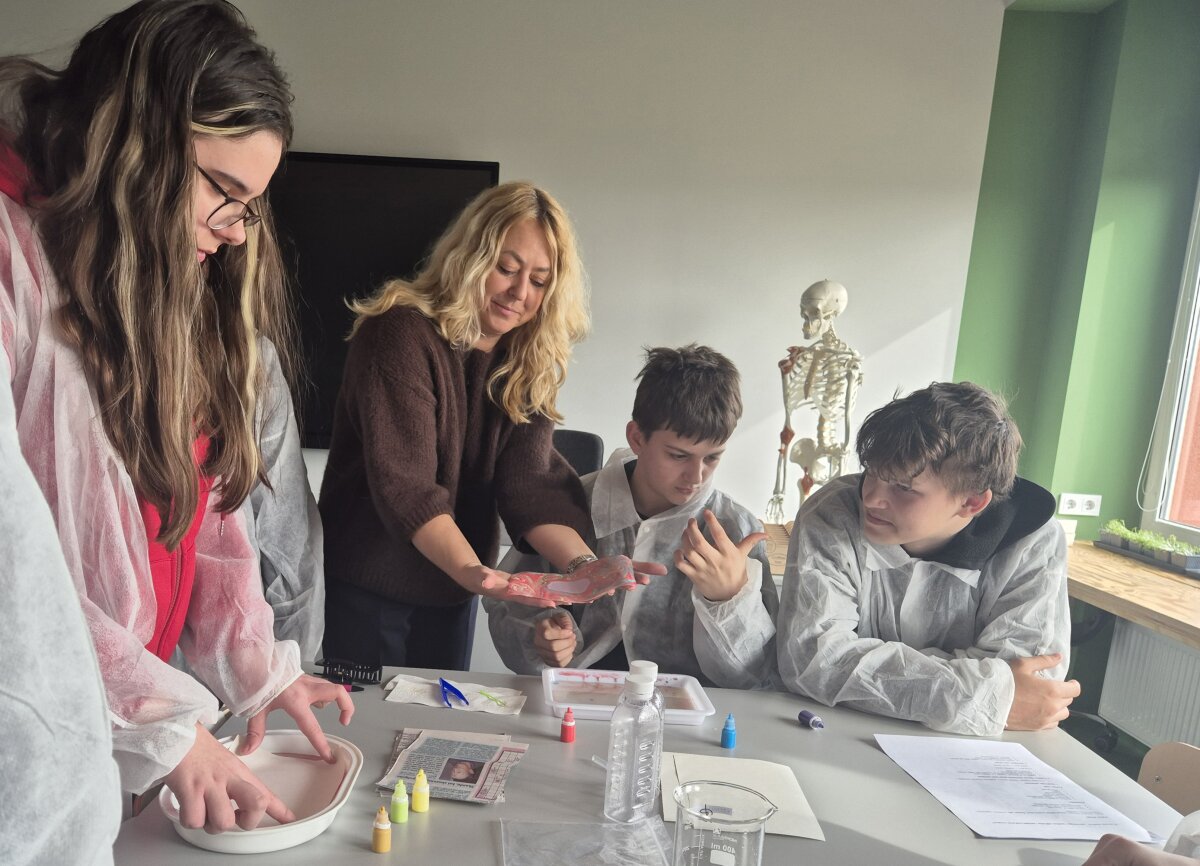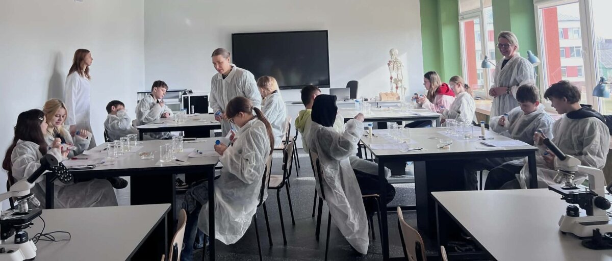 (03- 24 d.) 6-7 kl. mokinių komandos iš Lazdijų gimnazijos ir Marijampolės P. Armino progimnazijos nėrė į STEAM veiklas: tyrė vandens telkinių (Ančios, Šešupės, tvenkinio, mineralinio vandens spalvą ir skaidrumą, pagal muilo putojimą - kietumą, mikroskopu ieškojo gyvybės ženklų, o žinias pasitikrino „Kahoot“ žaidime. Didžiausias įkvėpimas - kūryba!