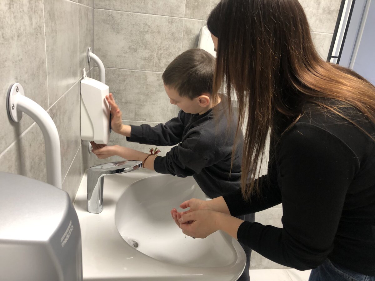 Kovo 10 dieną visuomenės sveikatos priežiūros specialistė A. Kubilienė specialiųjų klasių mokiniams vedė edukacinę pamokėlę apie rankų bei kūno higieną, kaip taisyklingai plauti rankas. Pamokėlės metu specialistė priminė, kas tai yra kasdieninė asmens higiena, kodėl privalu laikytis reikalavimų, kad plaunant rankas galima apsisaugoti nuo įvairių užkrečiamų ligų. Mikrobai ir virusai esantys mūsų aplinkoje, plika akimi yra nepastebimi. Jie keliauja, nuo vienų paviršių ant kitų, vaikams liečiant daiktus, sveikinantis vieniems su kitais. Kad vaikams būtų paprasčiau suprasti mikrobų keliavimo kelią ir įsitikinti jų pačių rankyčių švara bei higiena, atlikome bandymą. Rankytėse laikė mikroorganizmų miltelių pakelį, jį lietė ir tarp rankų siuntė draugui. O vėliau su UV šviesa galėjo stebėti mikroorganizmus ant savo rankyčių. Vaikai mikroorganizmų neišsigando, švariai nusiplovė rankas ir „išsivadavo“ nuo jų.