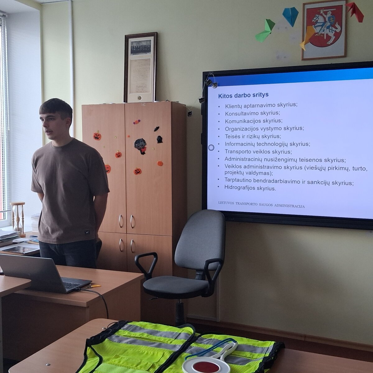 Mokiniai turėjo progą sužinoti daugiau apie inspektoriaus darbą – nuo kasdienių užduočių iki bendradarbiavimo su įvairiomis institucijomis. Lukas Šniževičius plačiai pristatė savo veiklos sritis, atsakė į mokinių klausimus ir skatino domėtis inžinerinėmis bei viešojo sektoriaus profesijomis. Jis taip pat pateikė užduotį, kurioje mokiniai atsakinėjo į pateiktus klausimus ir stengėsi rasti teisingus atsakymus.