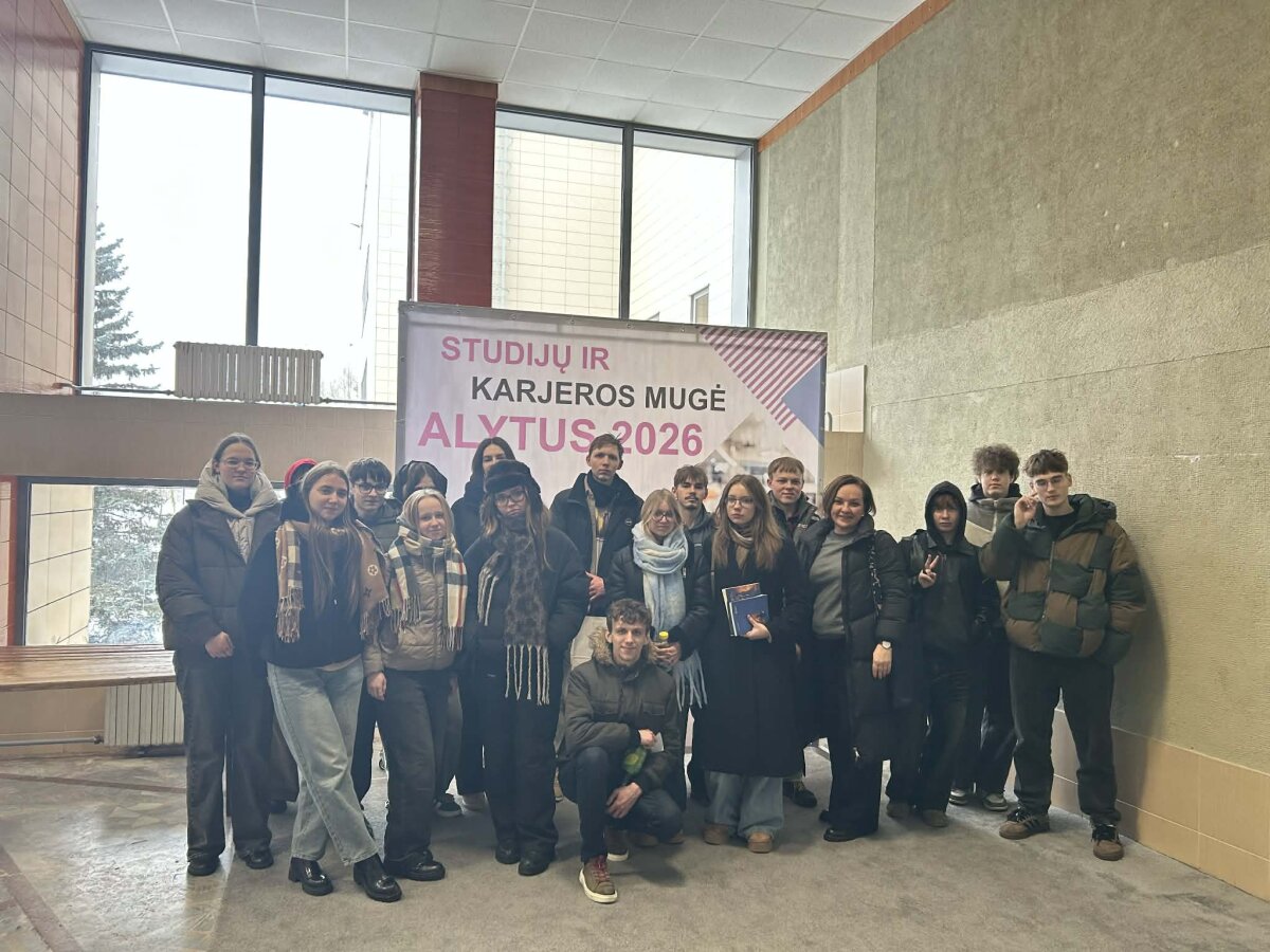 Vasario 10 d. gimnazijos 3g klasių ir Šeštokų skyriaus mokiniai vyko į Alytaus sporto centre organizuotą, pirmąją Pietų Lietuvoje Studijų ir karjeros mugę Alytus 2026. Tikslas – padėti vyresniųjų klasių mokiniams priimti vienus svarbiausių sprendimų gyvenime – atsakingai pasirinkti tolesnį mokymosi ar profesinės karjeros kelią. Mokiniai turėjo progą susipažinti su visu švietimo ir karjeros galimybių spektru – nuo stipriausių šalies universitetų ir kolegijų iki profesinio rengimo centrų. Renginyje taip pat dalyvavo verslo atstovai, nevyriausybinės organizacijos, kariškiai, priešgaisrinės gelbėjimo tarnybos pareigūnai bei kiti, galintys padėti jauniems žmonėms atrasti savo stipriąsias puses ir kryptį. Džiaugiamės, kad mokiniai atsakingai žiūri į savo tolesnio mokymosi, karjeros planavimą ir naudojasi galimybe, neišvykstant toli, pasinaudoti siūlomomis puikiomis galimybėmis - gauti patikimą informaciją, patirti tiesioginį kontaktą su švietimo, nevyriausybinių organizacijų ir verslo atstovais. Tikimės, kad būsimiems abiturientams bus daugiau aiškumo renkantis egzaminus ir planuojant ateitį.