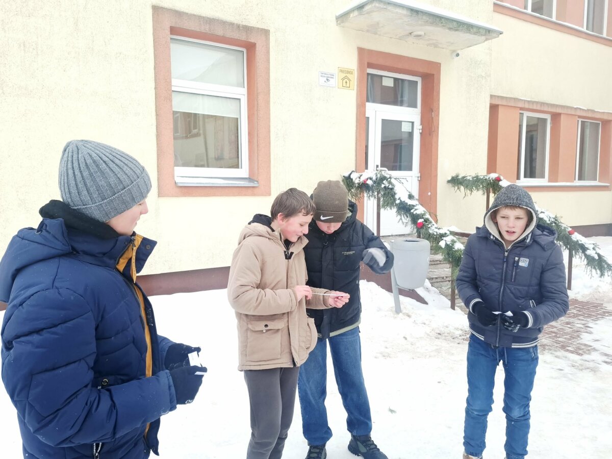 5 klasės mokiniai anglų kalbos mokėsi netradicinėje aplinkoje – lauke. Pamokos metu jie kartojo žiemos tematikos žodyną (snow, cold, winter, boots, hat), vykdė paprastas instrukcijas anglų kalba, stebėjo aplinką ir kūrė trumpus sakinius, remdamiesi tuo, ką matė realybėje. Judėjimas, gamta ir kalba susijungė į aktyvų, įtraukiantį ir mokiniams prasmingą mokymosi procesą.