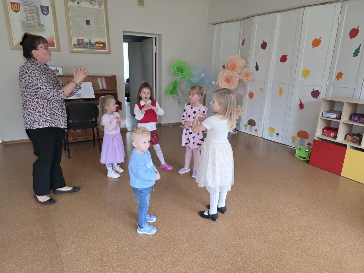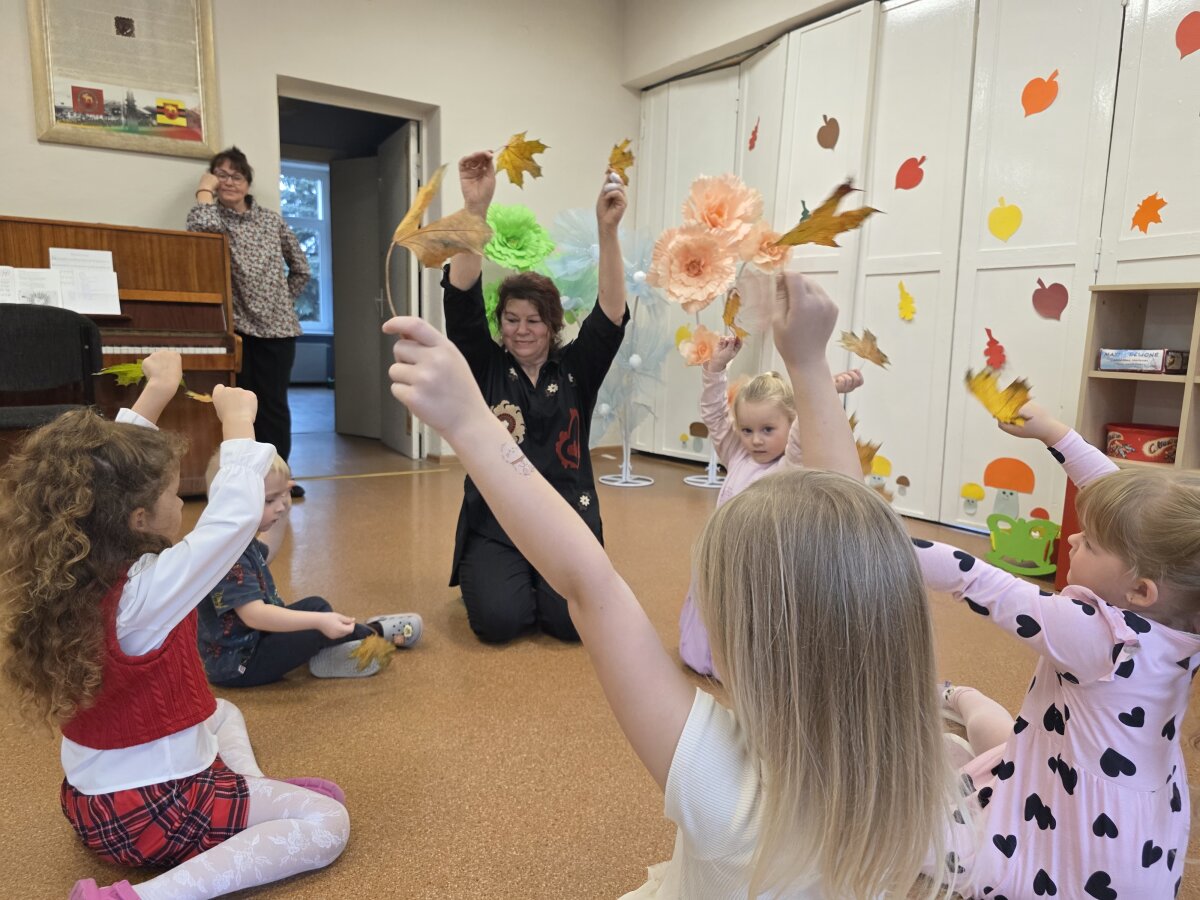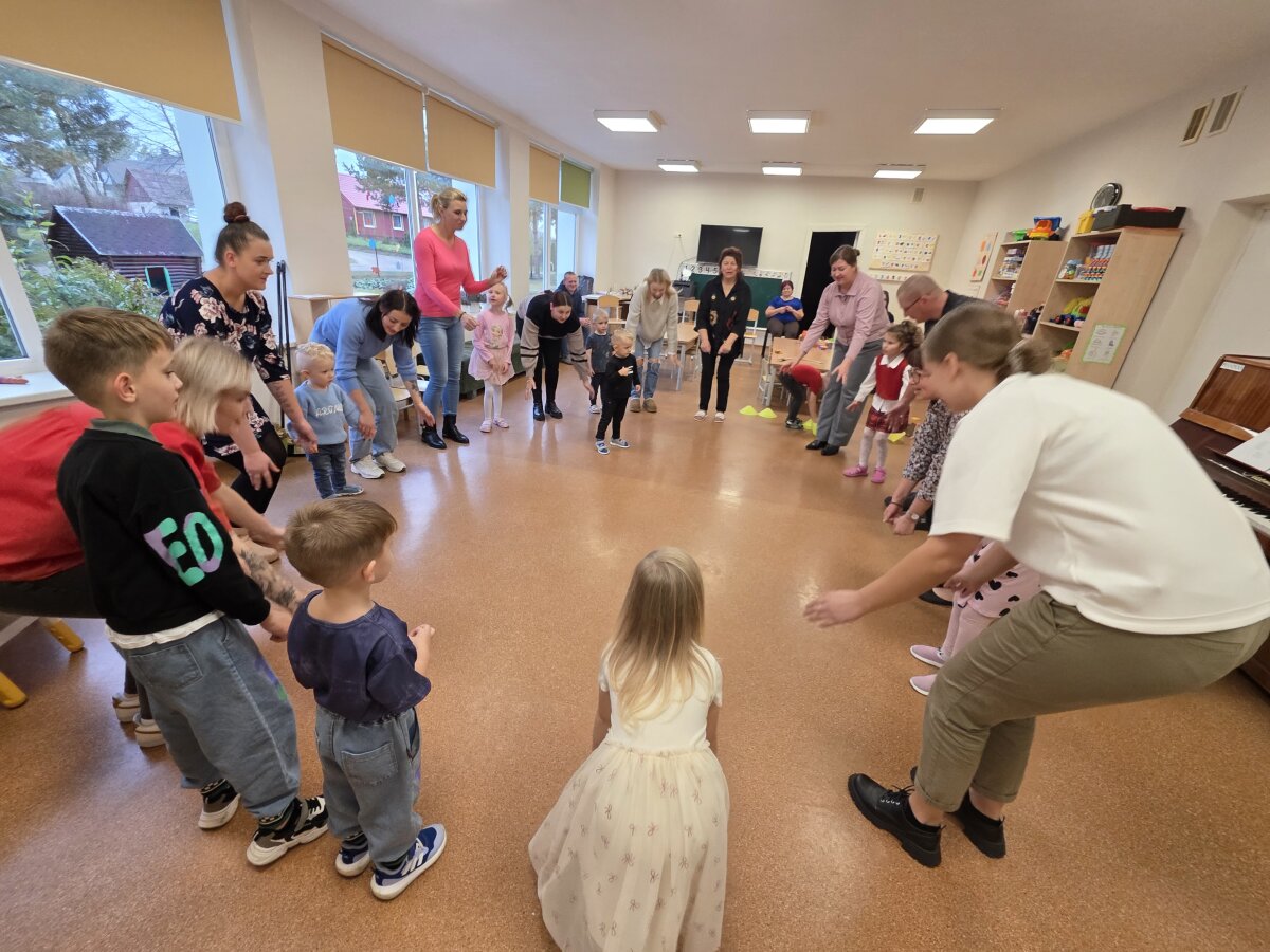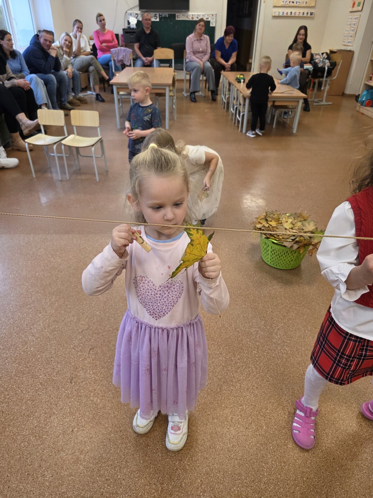 Vaikai padeklamavo eilėraštį "Už lango Rudenėlis", dainavo daineles "Riešutauti aš einu", 'Močiutės pyragas", "Obelėlė", šoko ratelius "Voro staltiesėlė", "Lapai du", "Rudeninių lapų šokis", atliko skaičiavino, pojūčių lavinimo judrumo, pirštelių miklumo reikalaujančias užduotis. Į veiklas noriai įsitraukė ir tėveliai.
