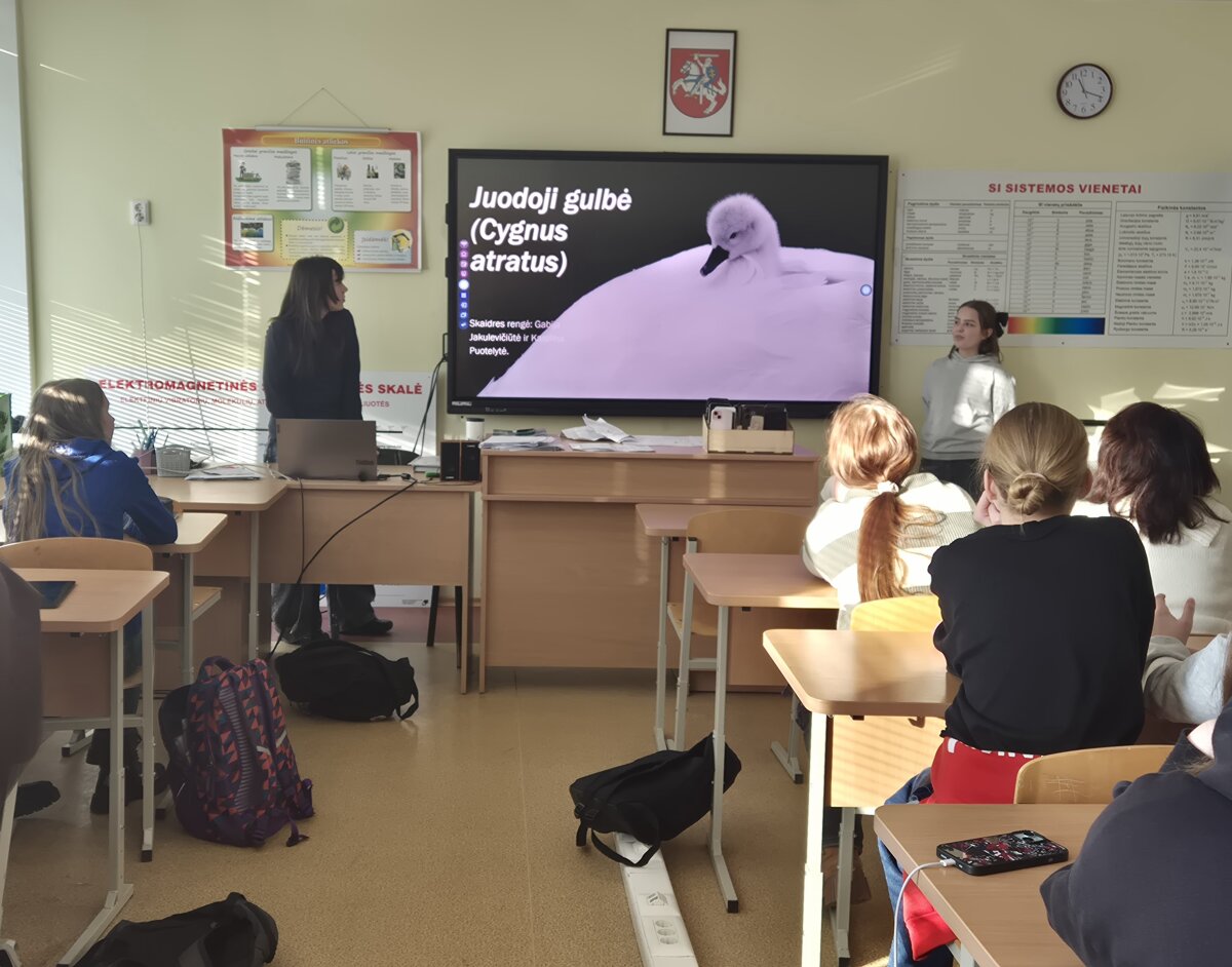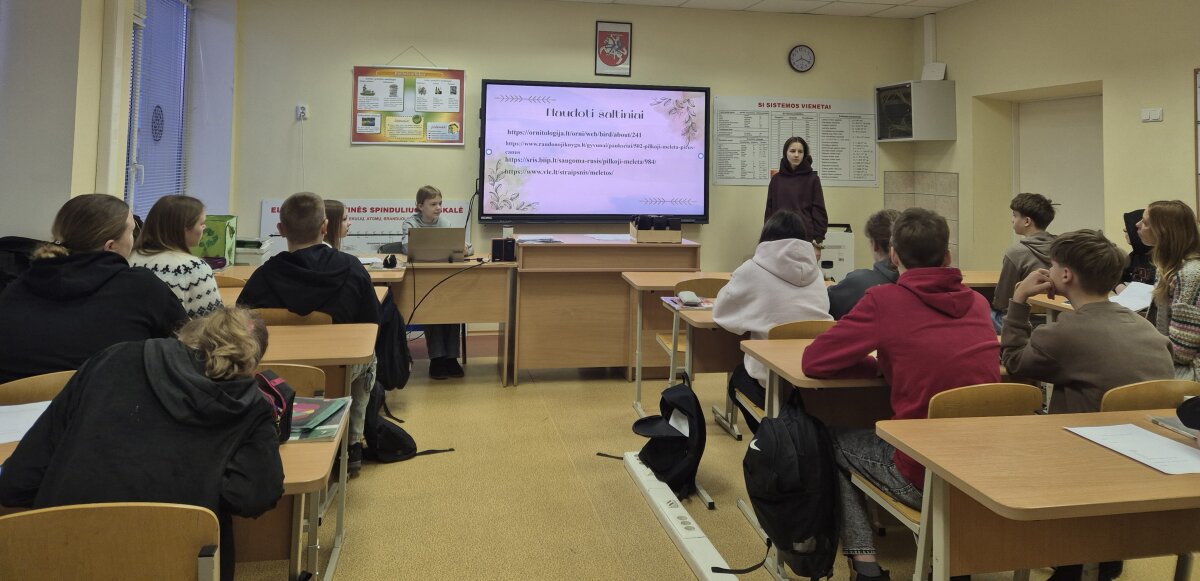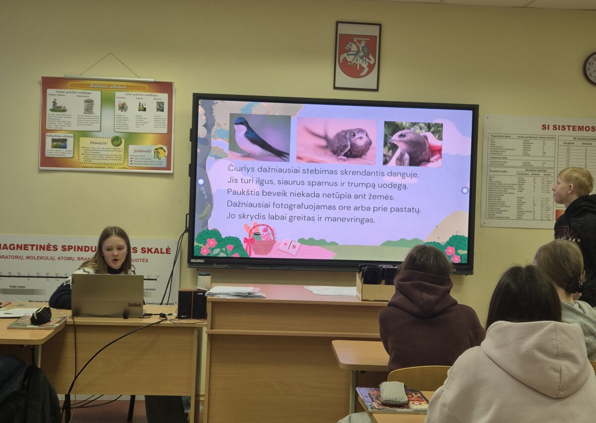 Antradienį (01-20) 7a, 7b klasių mokiniams vyko integruota biologijos pamoka „Paukščio portretas: nuo klasifikacijos iki dauginimosi“. Pamokos tikslas - komandose pristatyti paukščio portretą, išvaizdą, paplitimą, buvimo vietas, mitybą, įtvirtinti žinias apie paukščius. Biologijos mokytoja Vaida organizavo bendrą darbą su visa klase, pristatė reikalavimus darbams, aptarė mokinių pristatymus apie paukščius, darbą komandoje, o spec. pedagogė mažesnėms mokinių grupėms teikė individualią pagalbą ir pritaikė užduotis, kurios tinkamai atlieptų mokinių poreikius. Abi mokytojos laikėsi to paties plano. Visi mokiniai skirtingais būdais atliko tą pačią užduotį. Žinių įtvirtinimui 7a kl. mokiniai paruošė Kahoot žaidimą apie paukščius. Pamokos organizavimas diferencijuotu mokymo būdu sudaro sąlygas to paties mokymosi tikslo siekti skirtingais būdais, didina mokinių įsitraukimą, motyvuoja.